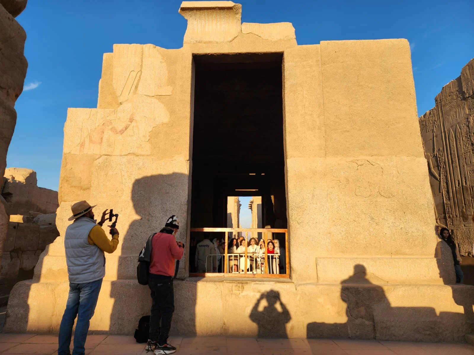 وتابع الحضور، يتقدمهم الدكتور هشام أبوزيد نائب محافظ الأقصر ومسؤولو الآثار والصوت والضوء، لحظة انطلاق موسيقى الشروق التراثية التي صاحبت تسلل خيوط الضوء لتستقر فوق مقصورة قدس الأقداس بمعبد آمون رع، في مشهد استمر حتى الساعة 07:00 صباحا.