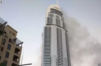 صور| فندق «العنوان» في دبي بعد الحريق بصباح أول يوم بـ2016