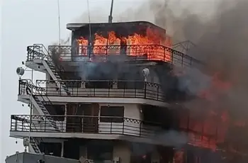 أثناء رسوها فى ورشة الصيانة.. حريق باخرة سياحية في أسوان