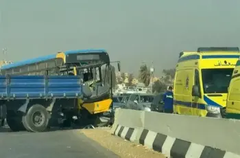 حادث الطريق السياحي.. أتوبيس نقل عام يصطدم بحاجز خرساني