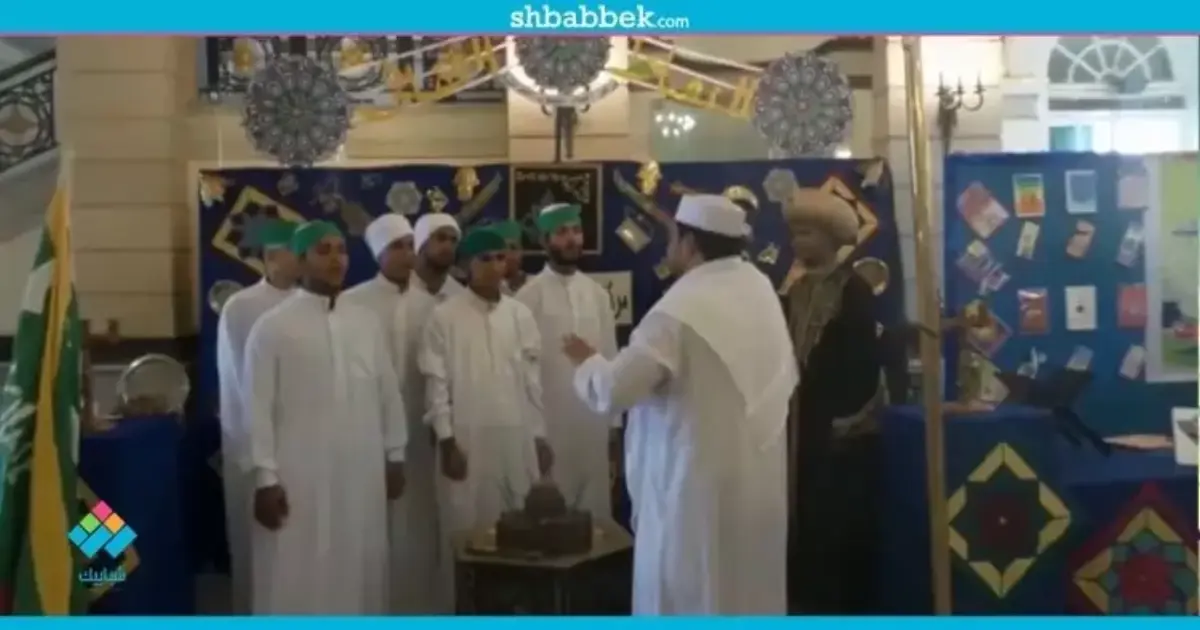 وقدم المركز عرضا يضم حلقة ذكر يتقدمها طالب وطالبة مرتدين ملابس أفراح تراثية خلفهم وصيفات العروسة حاملين الترمس والزلابية، ومجموعة من الطلاب تردد أناشيد دينية.