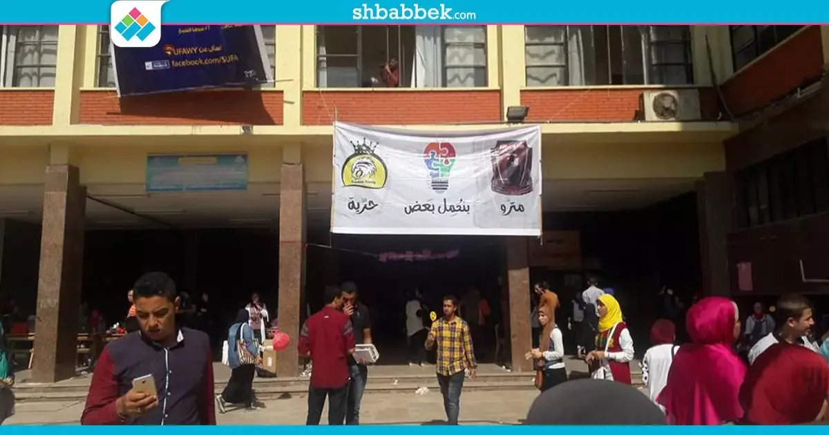 نظمت عدد من الأسر الطلابية، اليوم الثلاثاء، معرضًا للكتب المجانية، في ساحة كلية الآداب بجامعة عين شمس.