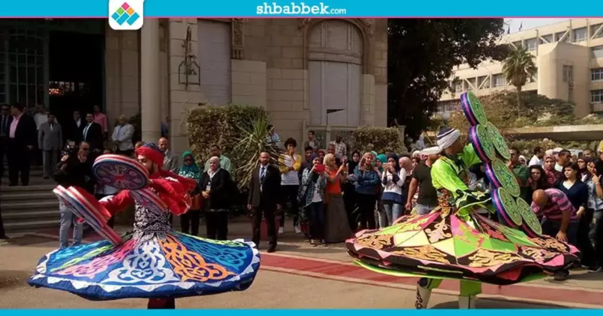 استقبلت فرقة المزمار البلدي وزير الثقافة الدكتور حلمي النمنم، أثناء افتتاح معرض للكتاب بجامعة عين شمس، أمام قصر الزعفران.