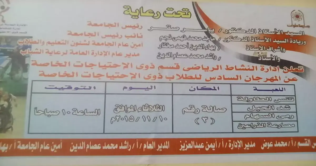 جامعة حلوان تقيم نشاط رياضي للطلاب «المعاقين»
