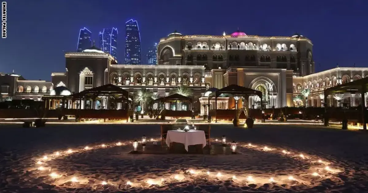 قصر الإمارات: يمكن حجز عشاء خاص على شاطئ فندق قصر الإمارات والتمتع بصوت تلاطم أمواج البحر والاستمتاع بعشاء فاخر ورومانسي.