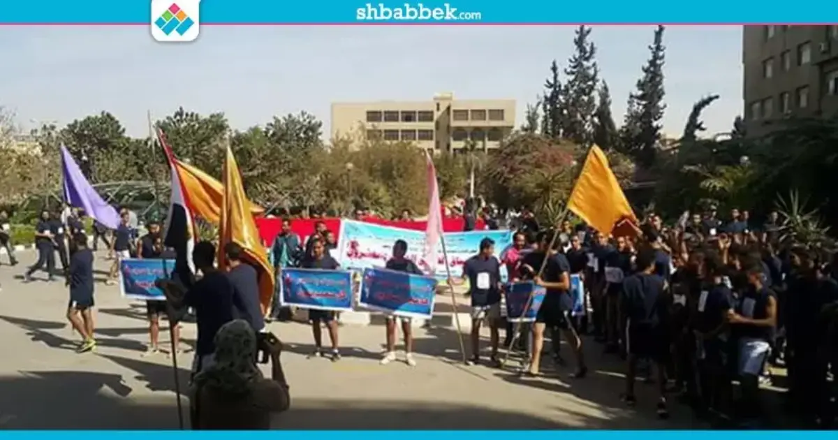 حاملين أعلام مصر.. طلاب جامعة حلوان يشاركون في «سباق الطريق»