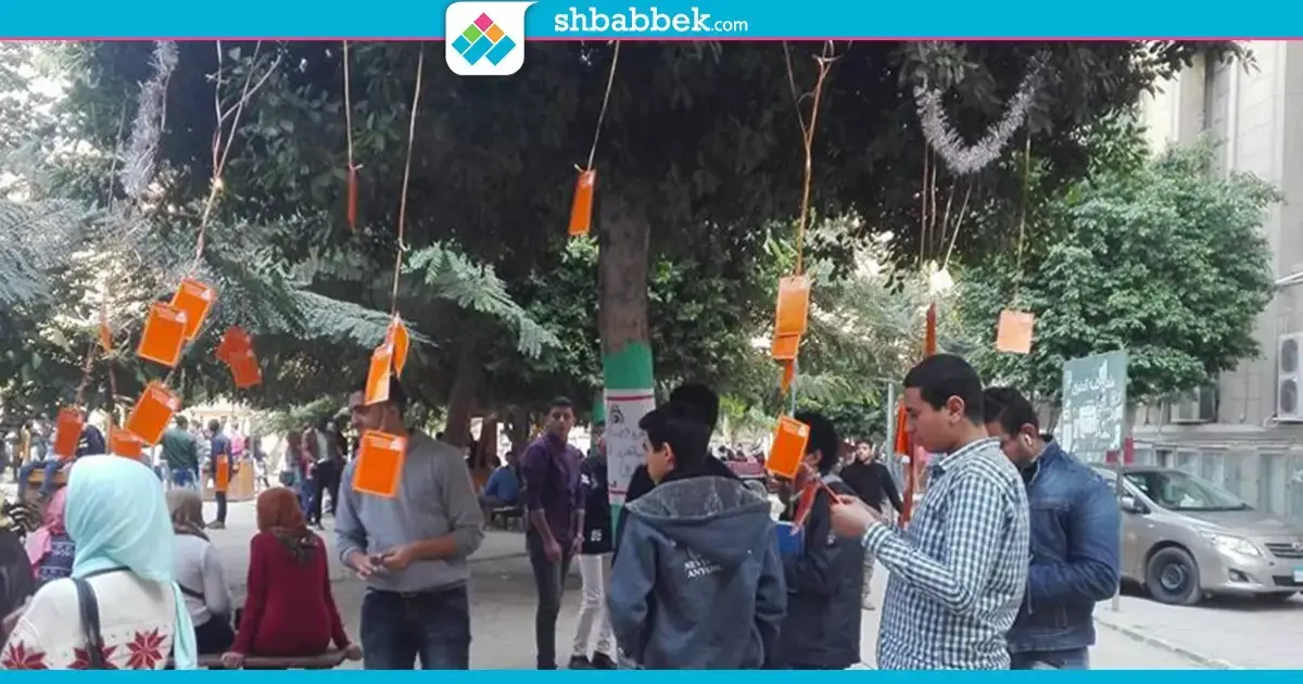 جسدت وحدة مناهضة التحرش بجامعة القاهرة نموذجا لشجرة الأحلام أمام كلية الحقوق، يقوم الطلاب بتدوين أحلامهم عليها.