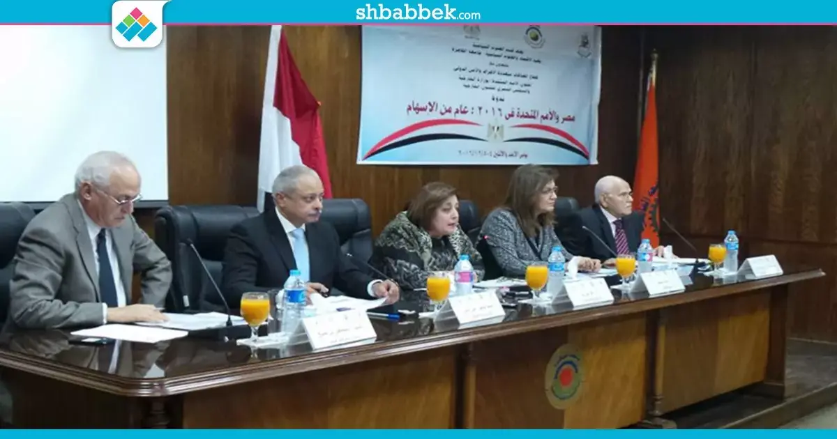 وأكدت خلال الندوة التي أقامتها الكلية، اليوم الأحد، تحت عنوان «مصر والأمم المتحدة في ٢٠١٦: عام من الإسهام»، أن الندوة تكتسب أهميتها من موضوعاتها التي تتناول دراسات وحوارات حول الشراكة والتعاون بين مصر والأمم المتحدة، وذلك بالتعاون مع قطاع العلاقات متعددة الأطراف والأمن الدولي وشئون الأمم المتحدة بوزارة الخارجية والمجلس المصري للشئون الخارجية.