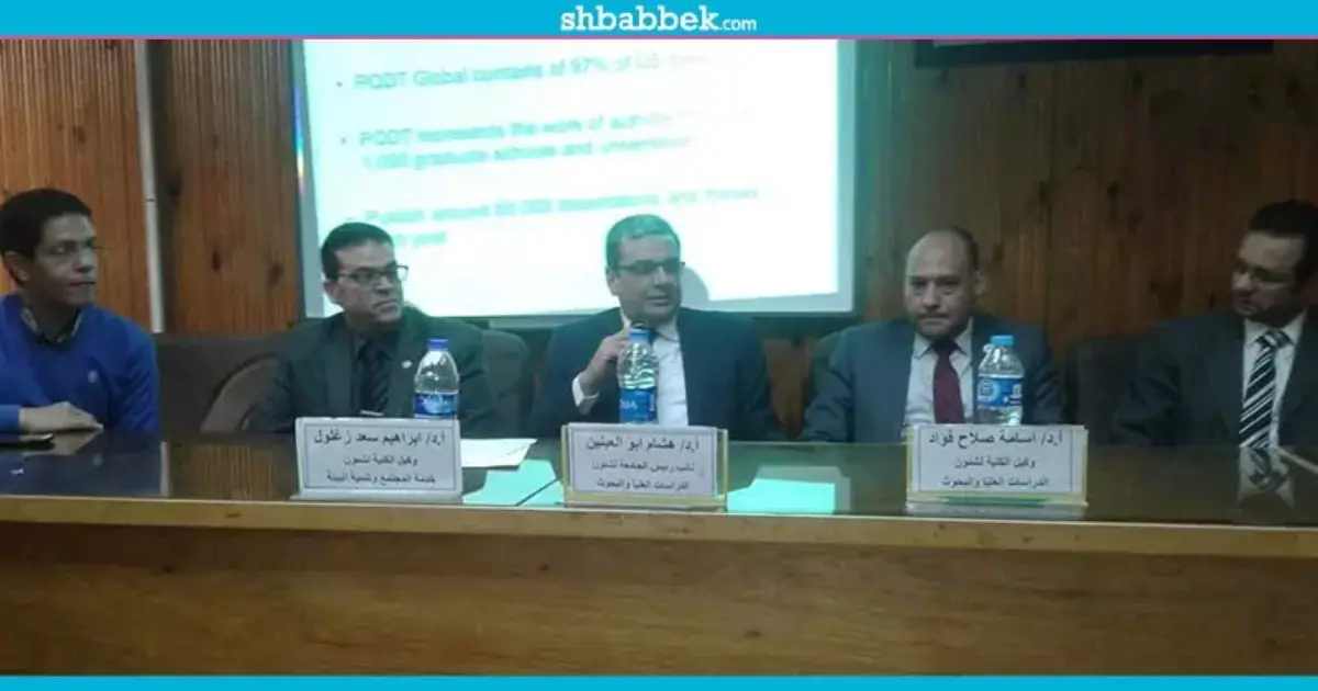 افتتح نائب رئيس جامعة بنها لشئون الدراسات العليا والبحوث، الدكتور هشام أبو العينين، ورشة عمل بكلية التربية الرياضية للتعريف بالامكانيات المتاحة ببنك المعرفة وخدماته للباحثين والدراسين وأساتذة الجامعة والطلاب.