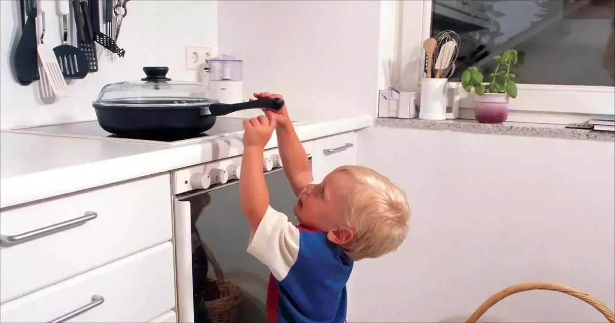 سارة الشيخ بوتجازها 5 شعلات وهي قررت تطبخ على شعلة واحدة بس على اليمين جنب الحيطة عشان بتخاف تشغل الشعلات كلها وبنتها تدخل وتحصل مشكلة. فأنتي ممكن تعملي زيها وتستغني عن شعلات معينة وتشغلي شعلة واحدة ولو ده هيبقى صعب، ممكن تخلي حد يعملك الحاجز اللي أنتي شايفاه في الصورة ده بحيث لو أبنك عايز يلمس حاجة ميقدرش يطول.
