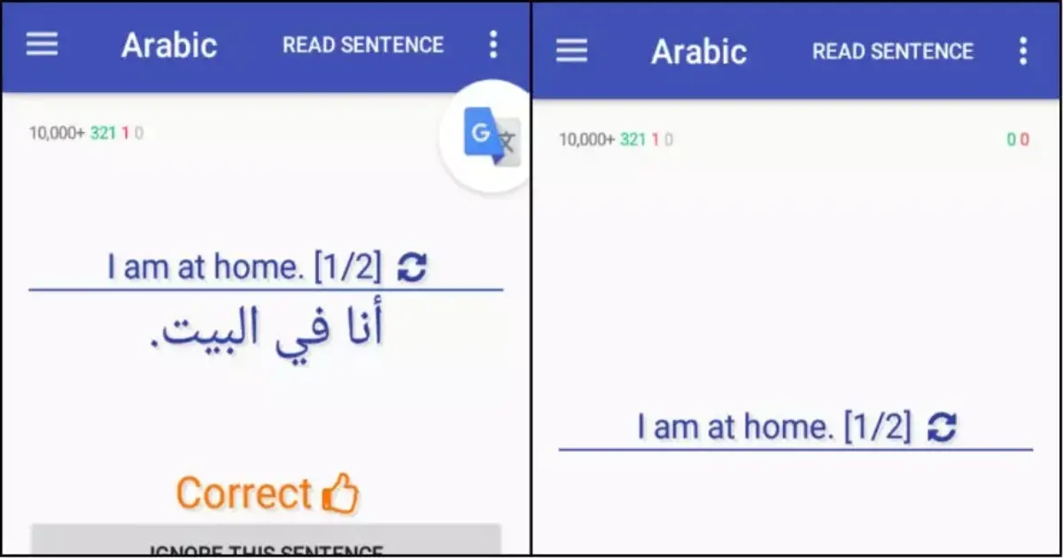 بالنسبة للناطقين باللغة العربية فإن التطبيق يدعم فقط تعلم اللغة الإنجليزية وذلك عبر توفيره لأكثر من 12 ألف جملة متنوعة.