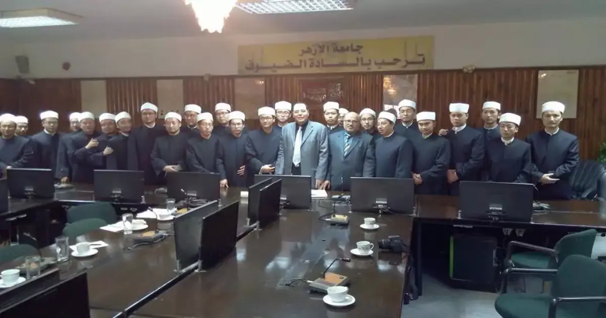 وضم الوفد ٢٦ إماما وعالما من جنوب وشمال ووسط الصين يتدربون على المناهج الأزهرية في دورة الرابطة العالمية لخريجي الأزهر.