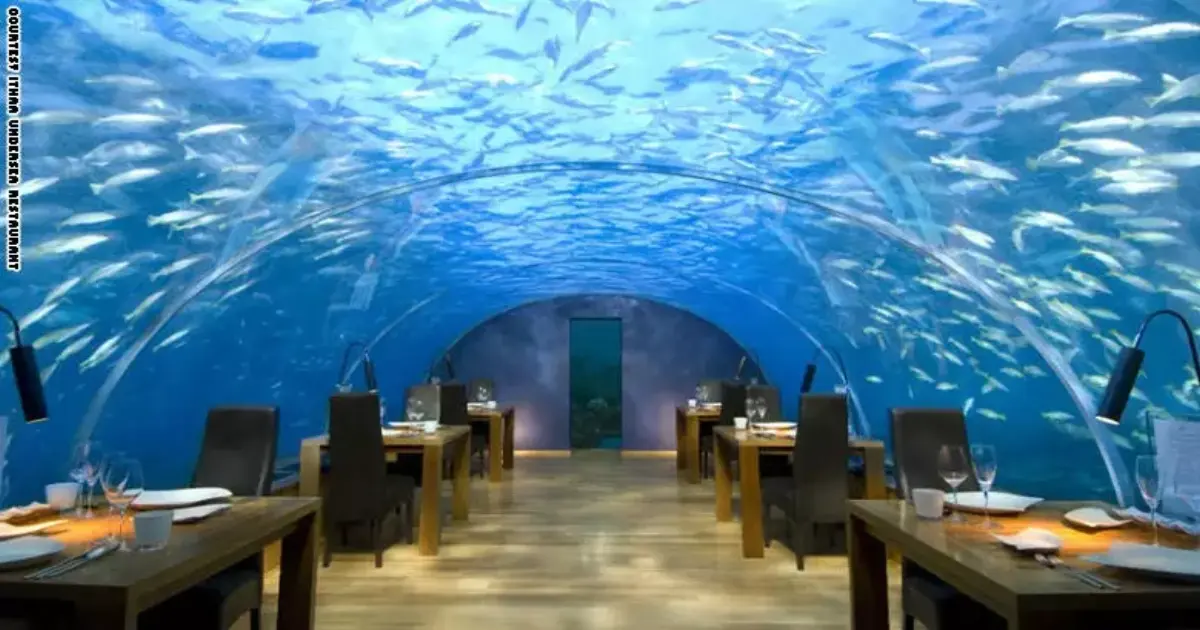 ويوجد في الفندق مطعم تحت سطح الماء يتّسع لـ 12 شخصاً فقط، بإطلالة خلابة على أعماق البحر.