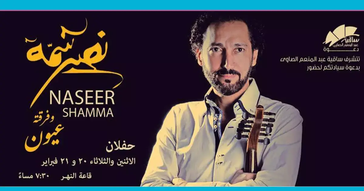 تقيم ساقية الصاوي، في الساعة السابعة والنصف من مساء الاثنين، حفلا للفنان نصير شمة، بقاعة النهر.