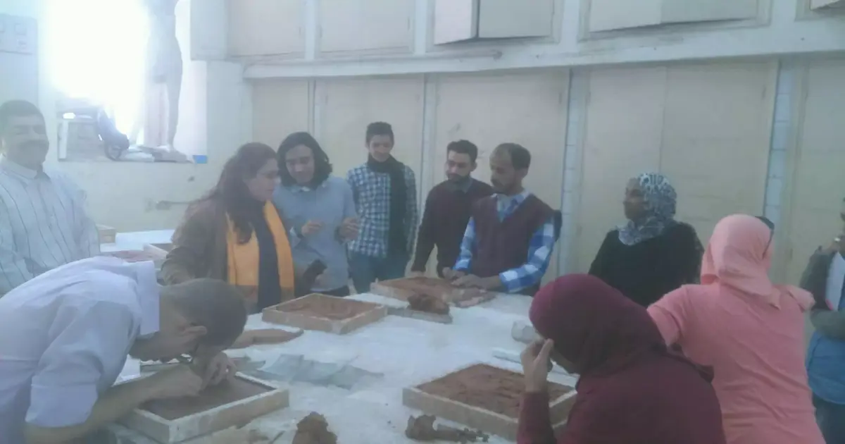 نظم قسم النحت بكلية الفنون التطبيقية بجامعة حلوان، اليوم الأحد، ورشة في «النحت»، للطلاب المكفوفين من جامعة القاهرة، وذلك بمقر الكلية بمنطقة الجيزة.