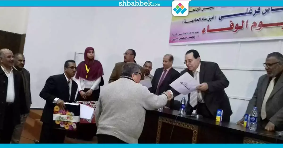 وقدم القائم بأعمال رئيس الجامعة، الدكتور أحمد حسني، شكره للدكتور إبراهيم الهدهد الذي كان يتولى المنصب حتى الثلاثاء الماضي، لافتا إلى أنه صاحب الفضل في الموافقة على تنظيم يوم الوفاء وتكريم العاملين.