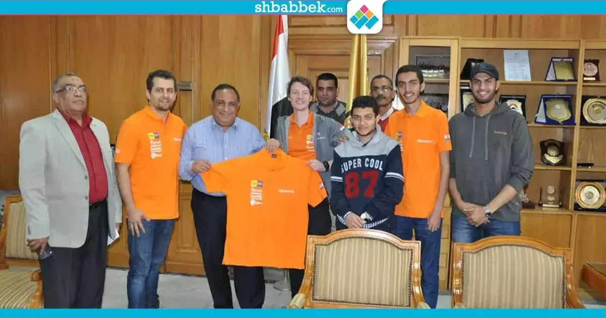 كرم رئيس جامعة حلوان، الدكتور ماجد نجم، الفريق المشترك بين جامعة حلوان وجامعة TUDELFT الهولندية والذي يشارك في المسابقة الدولية للسيارات الشمسية.