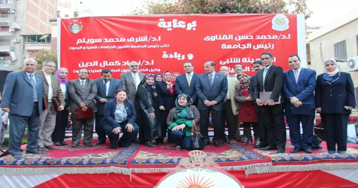 حضر الحفل كل من أشرف عبد الباسط نائب رئيس الجامعة للتعليم والطلاب، وزكى زيدان، نائب رئيس الجامعة لشئون خدمة المجتمع وتنمية البيئة، والدكتورة أمينة شلبى عميد الكلية، والدكتور نهال كمال وكيل الكلية لشئون الدراسات العليا والبحوث.