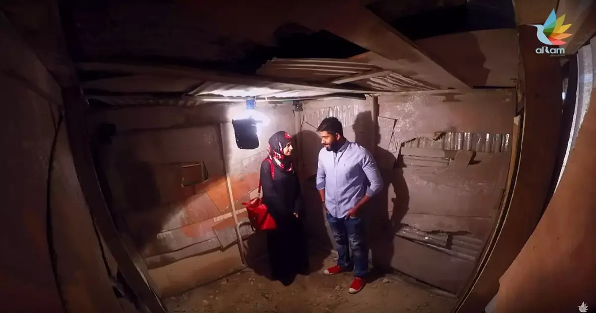 بعد دقائق قليلة من دخول الغرفة، بدأت الضربات تتوالى على الغرفة من كل مكان، وبعدها سقوط الأمطار بشدة وتسرب الماء داخل الغرفة التي من المفترض أن تكون للمعيشة، في إشارة إلى أوضاع اللاجئين السوريين في مختلف دول العالم وحدودها.