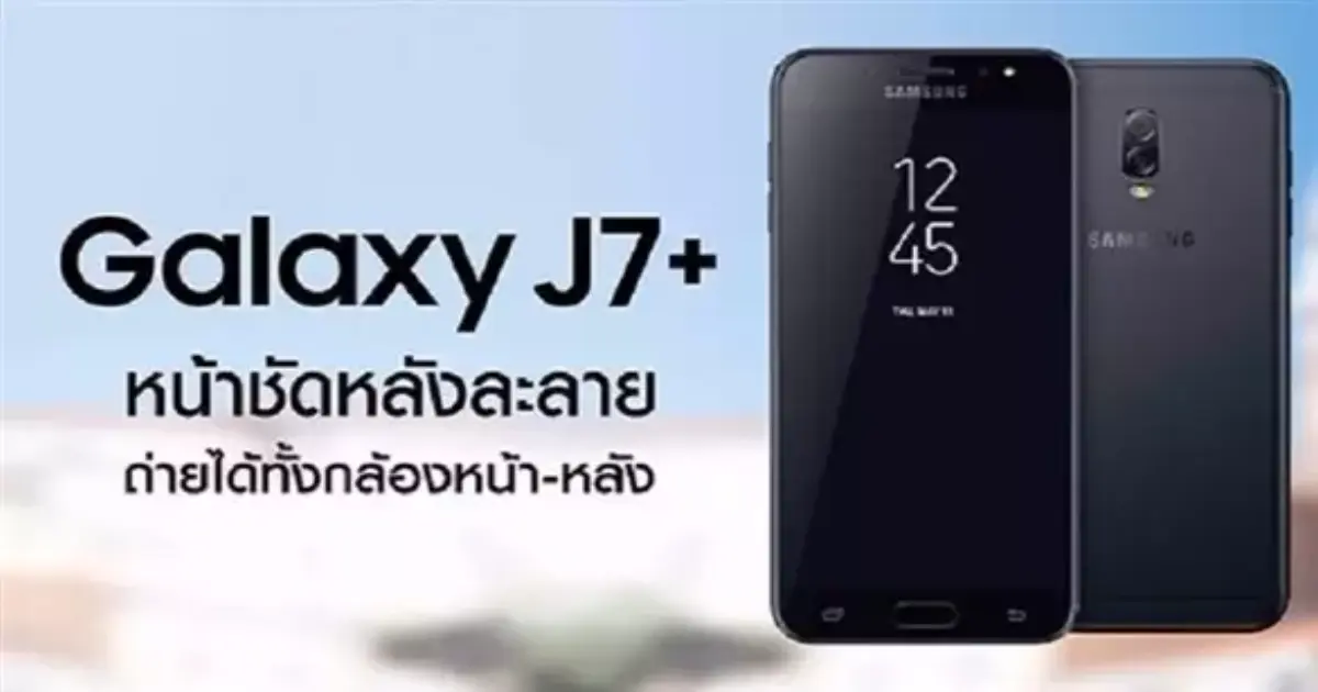 وأظهرت صورة إعلانية رسمية من تايلند أن إصدار العام الحالي من هاتف جالاكسي جي7 بلس سوف يتضمن كاميرتين خلفيتين، إذ كشفت الصورة عن شكل الهاتف وأبرز مواصفاته.