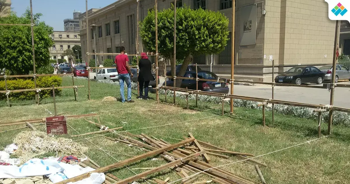 رصدت عدسة «شبابيك»، اليوم الأحد، بناء فريق الجوالة بكلية الآثار للمقر الخاص بهم أمام مبنى الكلية، تمهيدا لاستقبال الطلاب الجدد في فاعلية يحضرها عميد الكلية ووكلائها.
