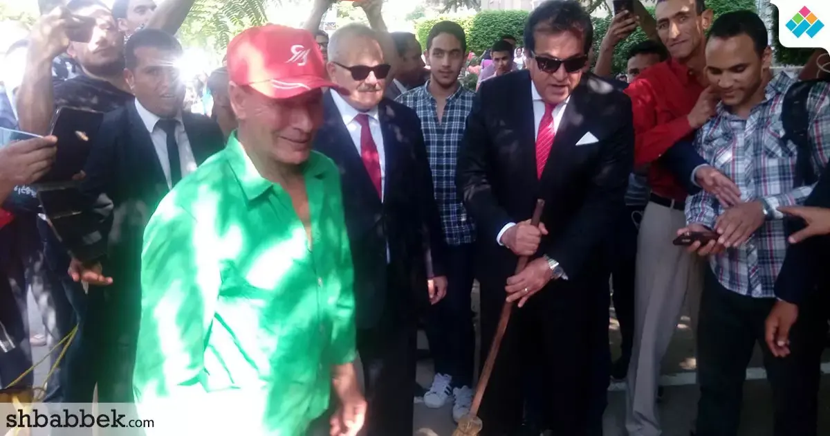 وزير التعليم العالي يكنس بدلا من عامل في جامعة القاهرة (صور)