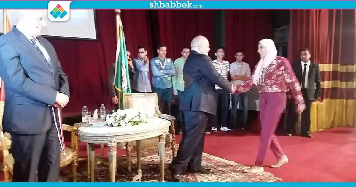 رئيس جامعة القاهرة يكرم بطلة العالم في الكاراتيه (صور)