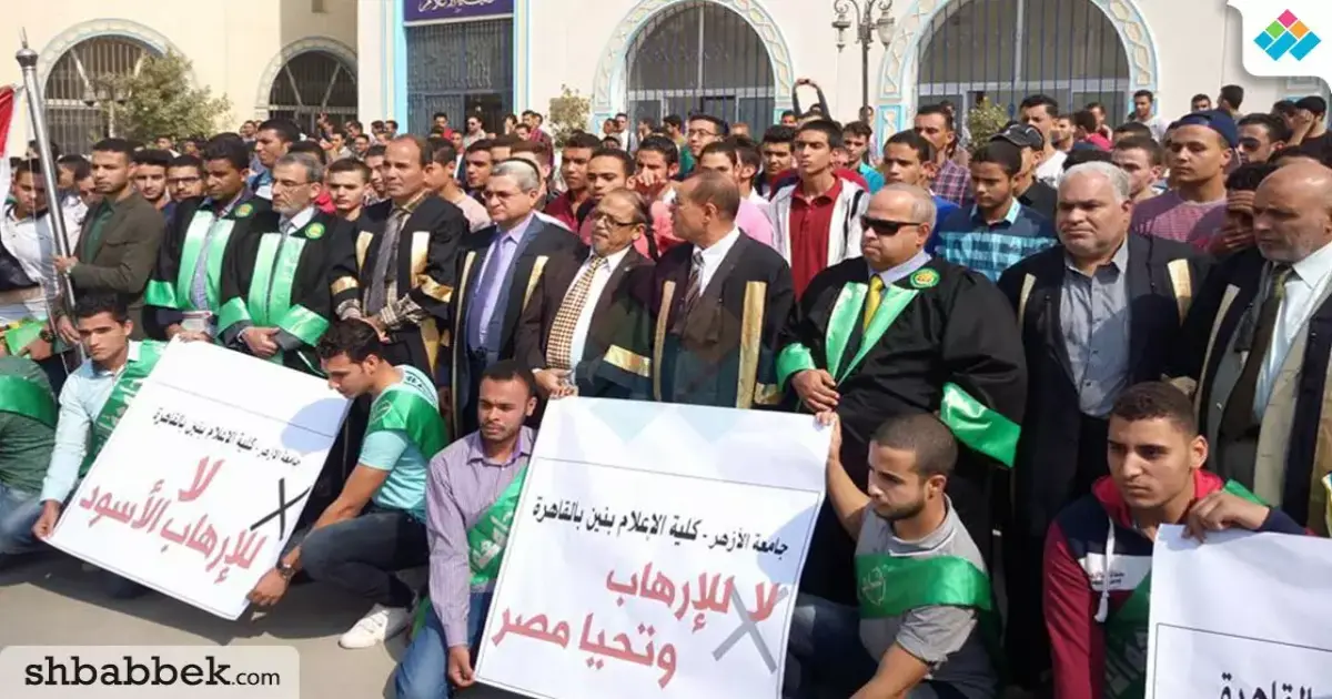 بلافتات «لا للإرهاب» وهتافات «تحيا مصر».. إعلام الأزهر تتضامن مع ضحايا حادث الواحات