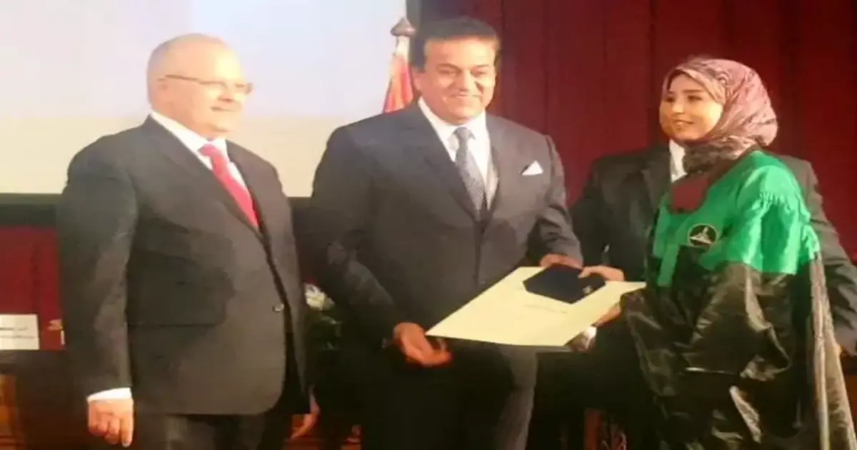 وزير التعليم العالي يكرم طالبة بجامعة أسيوط