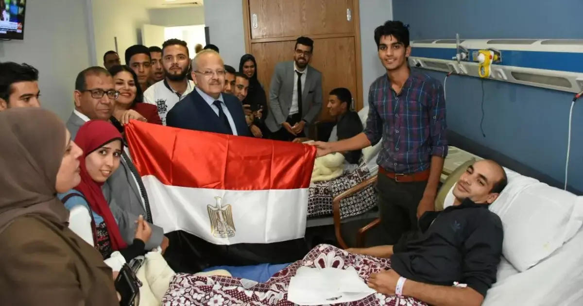 بالصور.. رئيس جامعة القاهرة يزور مصابي العملية الإرهابية بالواحات