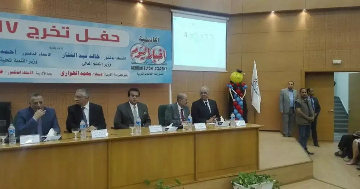 شهد وزير التعليم العالي والبحث العلمي، الدكتور خالد عبد الغفار، حفل تخريج دفعات 2017 لطلاب أكاديمية أخبار اليوم، بمقر الأكاديمية بمدينة السادس من أكتوبر.