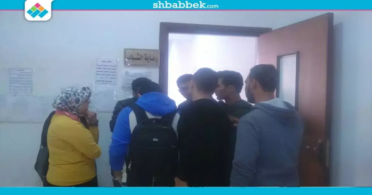 توافد طلاب كلية الآداب جامعة طنطا على مكتب رعاية الشباب بالكلية لسحب استمارات الترشح لانتخابات اتحاد الطلاب.