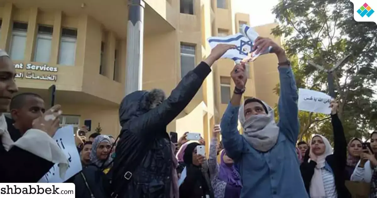 طلاب جامعة مصر للعلوم والتكولوجيا يتظاهرون لنصرة القدس (فيديو)