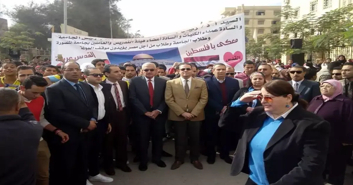 رئيس جامعة المنصورة يقود مسيرة تضامنية مع القدس (صور)