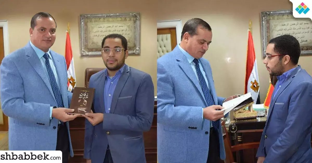 طالب يهدي رئيس جامعة سوهاج روايته «رفات على قيد الحياة» المشاركة بمعرض الكتاب