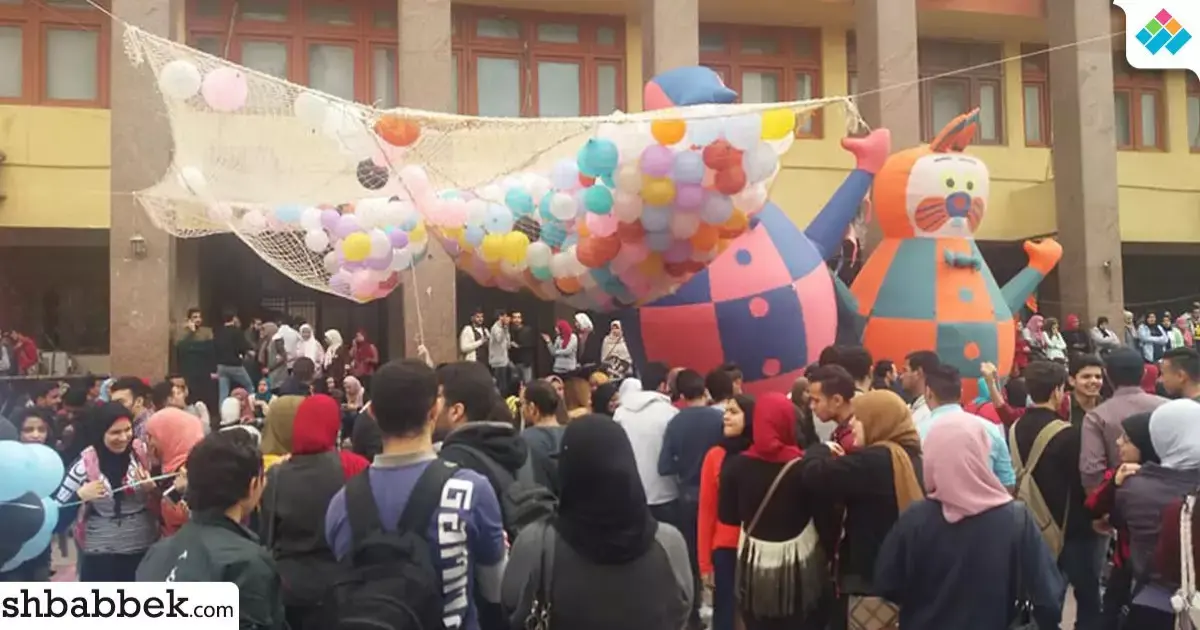 نظم اتحاد طلاب كلية التجارة جامعة عين شمس، لطلاب الكلية بمناسبة بدء الفصل الدراسي الثاني أمام مبنى الكلية.