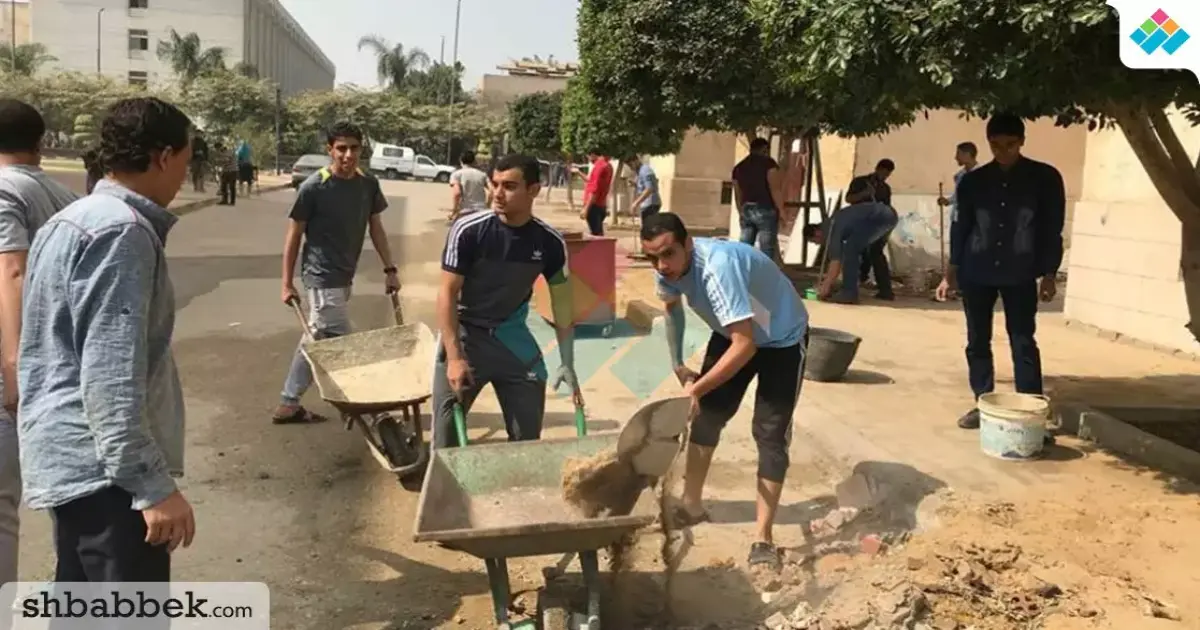 طلاب الأزهر ينظفون مخلفات البناء من حرم الجامعة (صور)