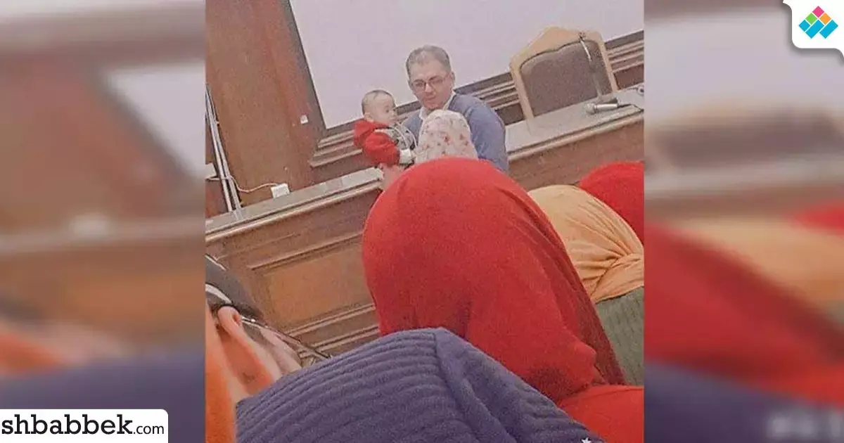 تداولت صفحات مواقع التواصل الاجتماعي صورة لأحد أعضاء هيئة التدريس بجامعة القاهرة يحمل طفل إحدى الطالبات داخل لجنة الامتحان.