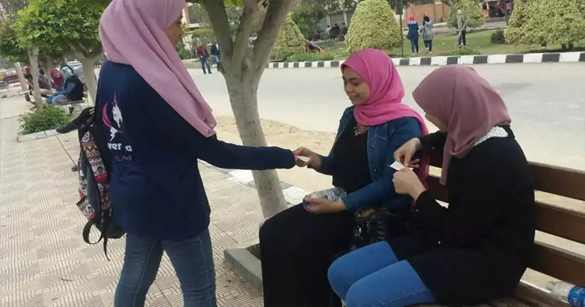 وزع أعضاء أسرة «power team» بكلية التجارة جامعة المنصورة، اليوم الأربعاء، قطع حلوى ورسائل مكتوبة على أوراق على مختلف الطلاب بمحيط الكلية.