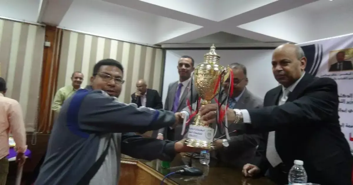 كرم نائب رئيس جامعة المنيا لشئون التعليم والطلاب، الدكتور مصطفى عبد النبي، الكليات المشاركة والطلاب الفائزين بالمراكز الأولى، في ختام فعاليات المهرجان الرياضي الأول.