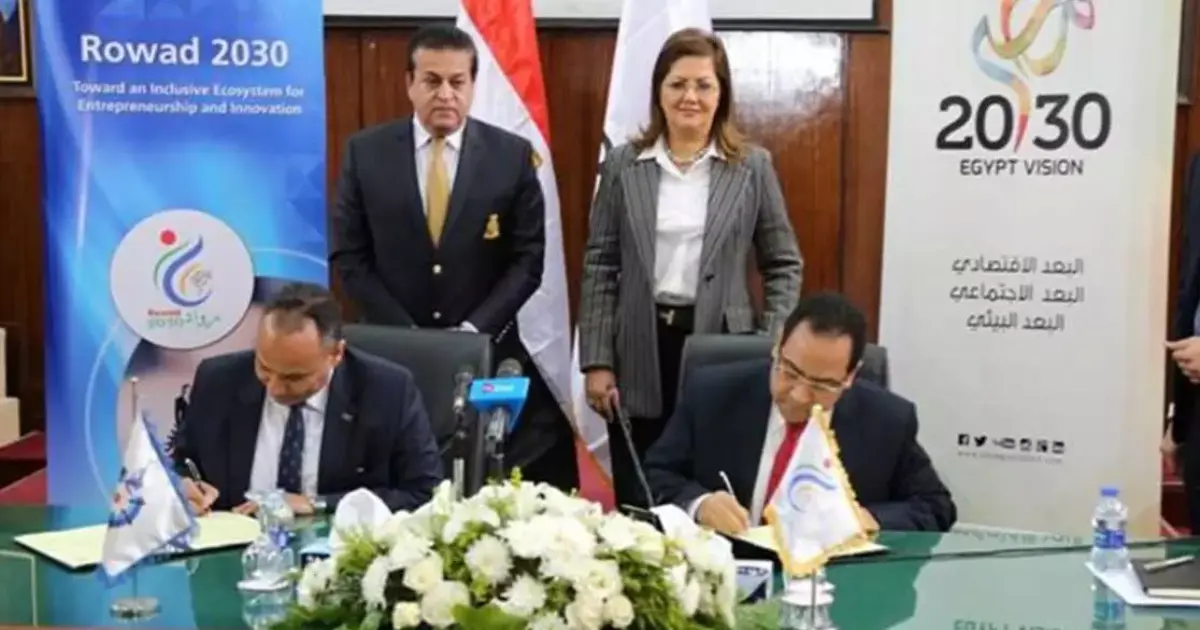 ووقع البروتوكول الثانى عن مشروع رواد 2030 الدكتورة غادة خليل مدير المشروع، وعن أكاديمية البحث العلمي والتكنولوجيا الدكتور محمود صقر رئيس الأكاديمية.
