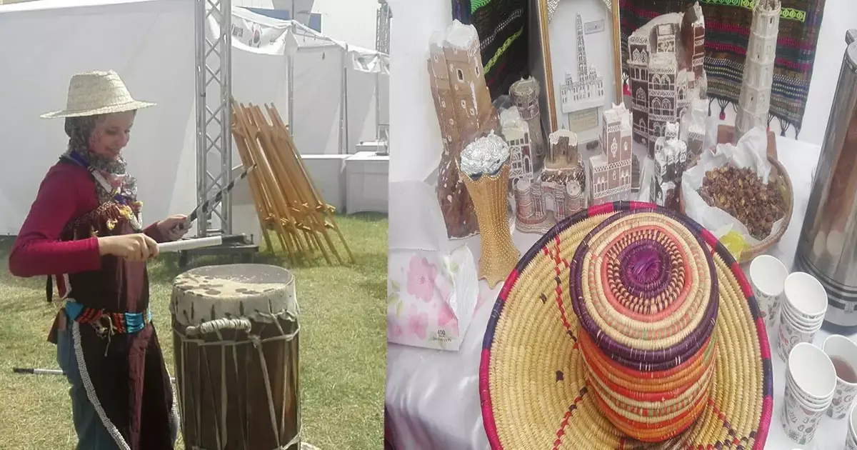 الجناح اليمني بمهرجان الشعوب تضمن عرضا لمشغولات يدوية مصنوعة في اليمن والأزياء الشعبية هناك، وأهم أزياء الأفراح المختلفة في كل محافظة.