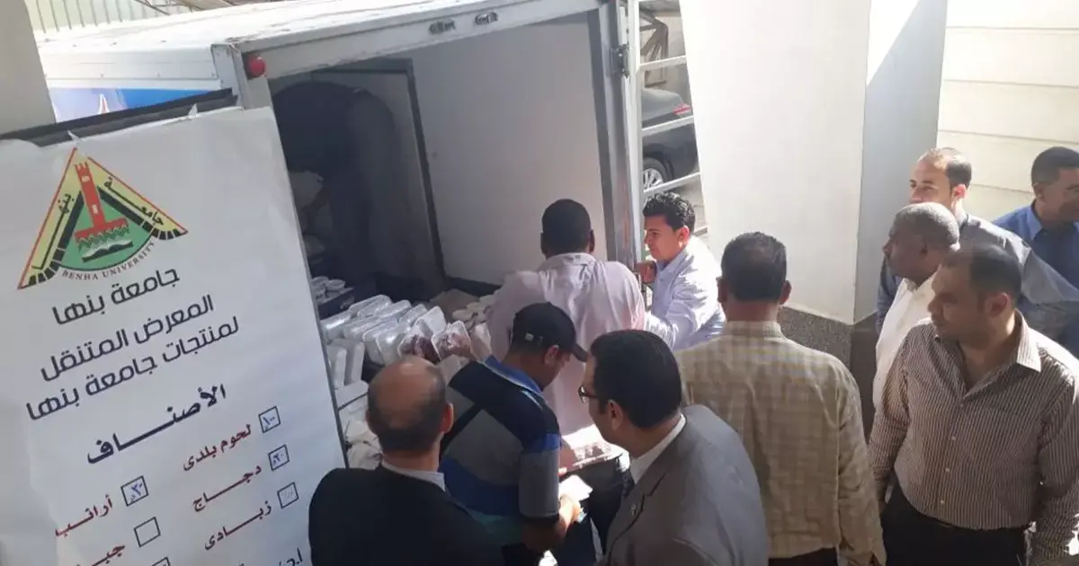 نظمت جامعة بنها، بالتعاون مع مركز معلومات مجلس الوزراء، معرضاً متنقلاً لمنتجات الجامعة، من كليات الزراعة والطب البيطري والعلوم، من المواد الغذائية واللحوم والدواجن والأرانب والألبان والمنظفات الصناعية.