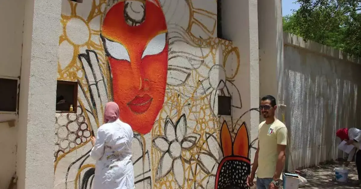 وشارك مجموعة من طلبة مرحلتي الماجستير والبكالوريوس بقسم التربية الفنية بكلية التربية النوعية بتنفيذ جداريات تعكس الحياة المصرية وتعبر عن أبرز المعالم الحضارية بمصر.