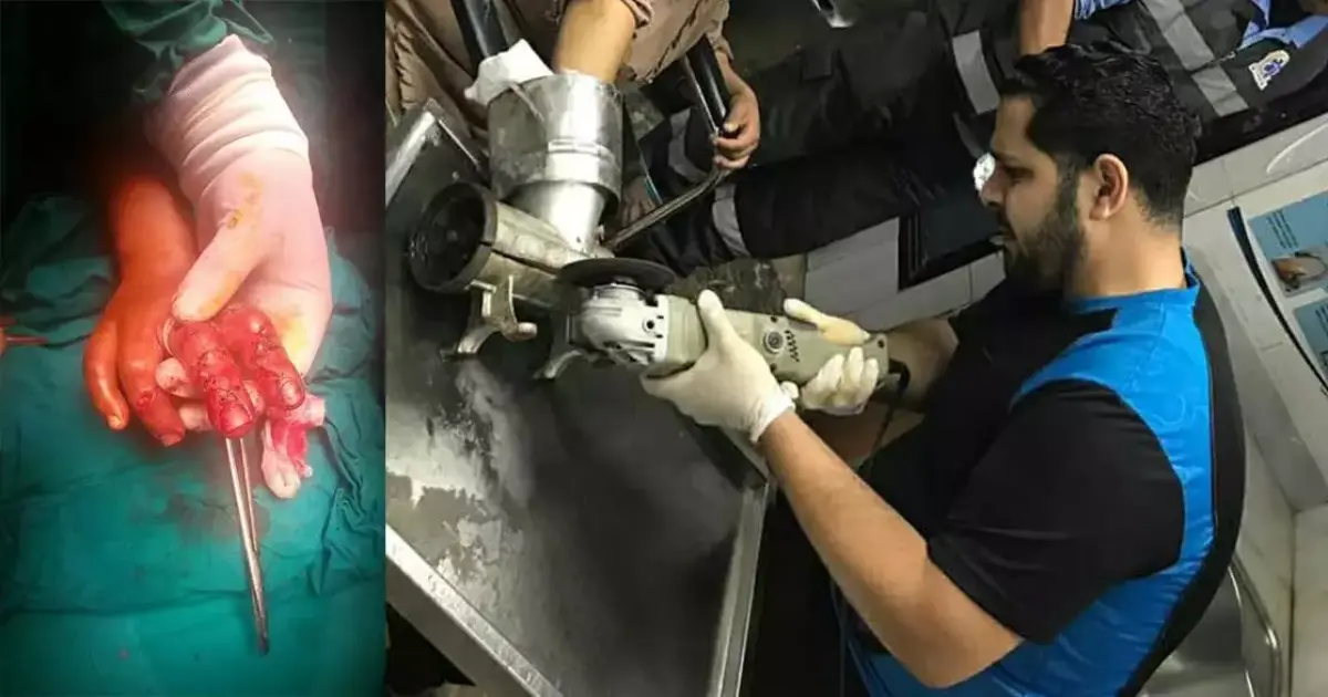 واستخرج الأطباء يد الفتاة عن طريق تكسير المفرمة باستخدام صاروخ.