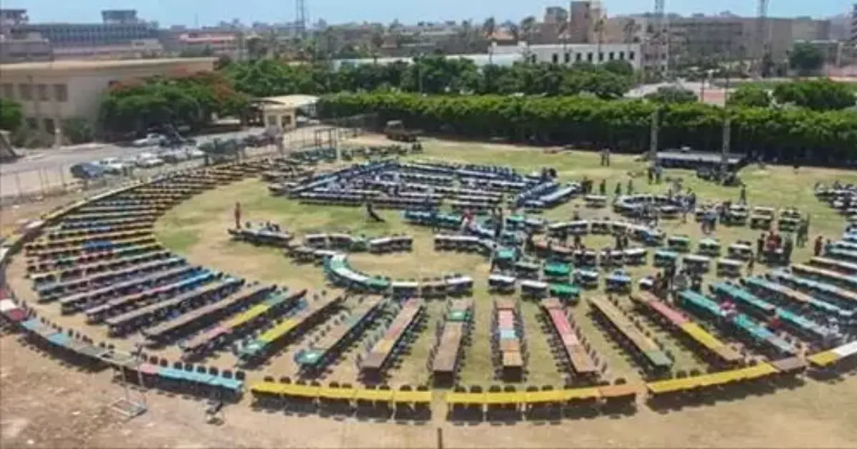 وقرر المنظمون وضع طاولات الطعام على شكل فانوس عملاق تجمع حوله مئات الطلبة وقت تناولهم وجبة الإفطار، بحضور عميد الكلية الدكتور سعيد علام، ووكيل الكلية الدكتور عصام وهبة.