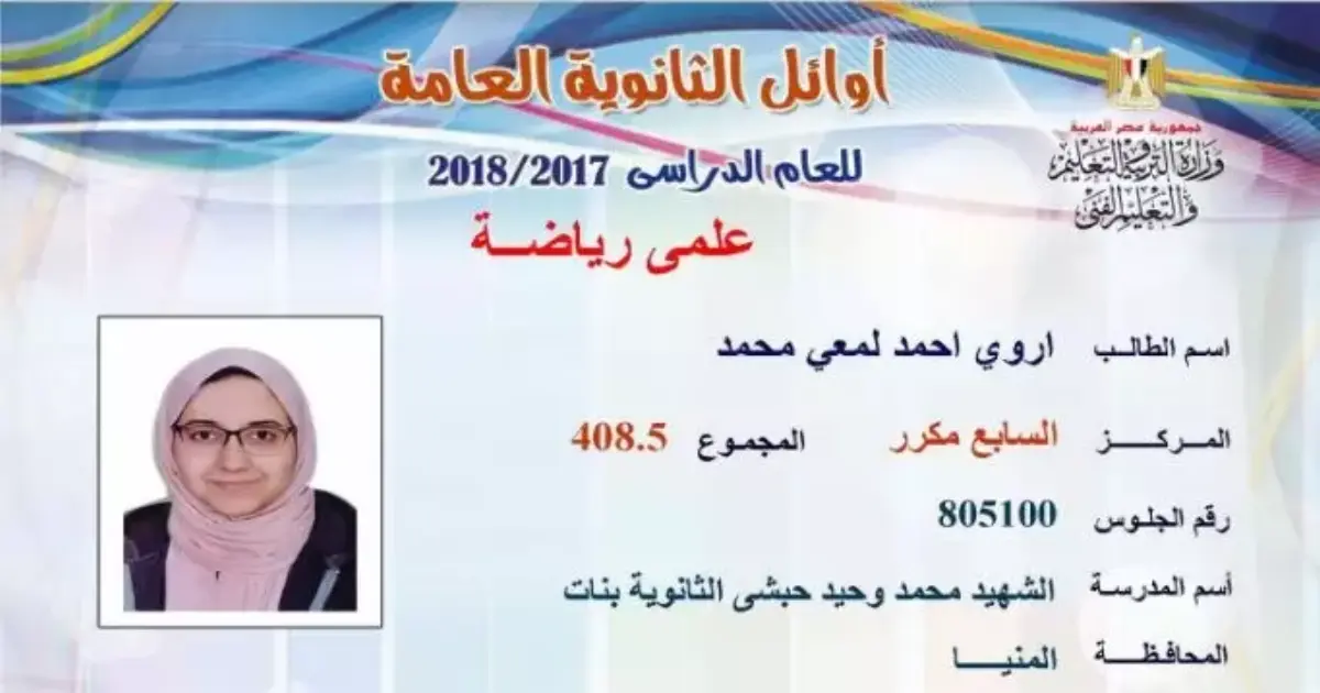 نتيجة الثانوية العامة 2018 بالاسم ورقم الجلوس