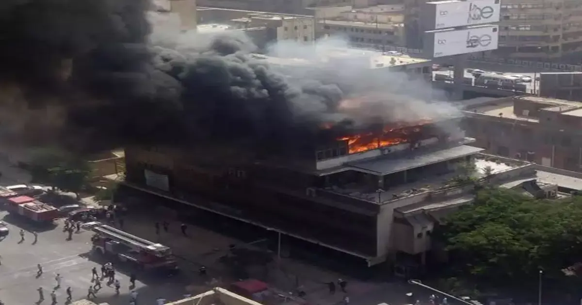 تداول مصريون على مواقع التواصل الإجتماعي صورًا لحريق ضخم داخل مبنى نقابة التجاريين، والبنك الأهلي المصري بميدان رمسيس.