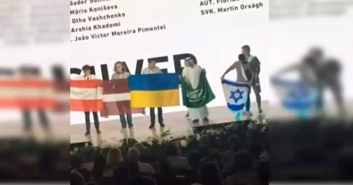 رفض طالب سعودي الوقوف إلى جانب إسرائيلي يحمل علم دولة الاحتلال في مسابقة أولمبياد الكيمياء الدولي.