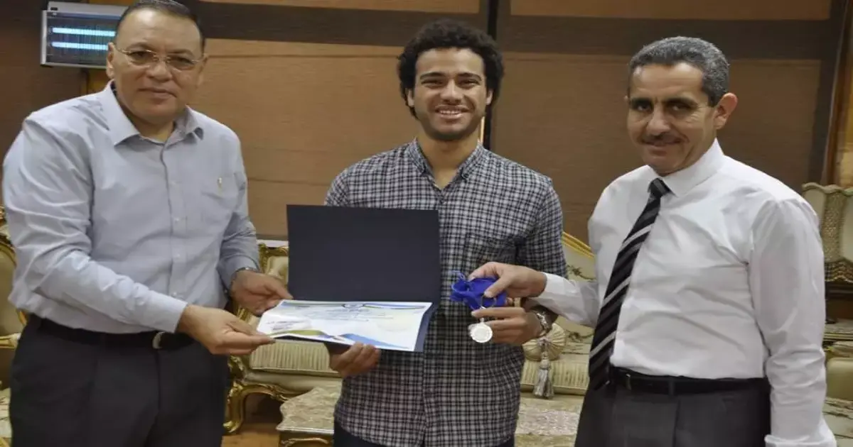 جامعة قناة السويس تكرم طالبا فاز في بطولة «السباحة زعانف» العالمية